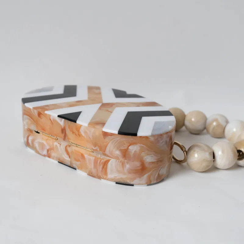The Katherine clutch combines sophisticated design with durable construction, crafted from high-quality PVC with a smooth polyester lining to protect your essentials. Its hard shell structure ensures lasting shape and security, while intricate beading, criss-cross patterns, and delicate chain details add a refined vintage flair ideal for evening occasions. Versatile enough for all seasons, this European-inspired accessory functions as a clutch, shoulder bag, or wallet, making it a stylish and practical choice for any fashion-conscious woman. Weighing just 400-450g, it offers both elegance and convenience without bulk.